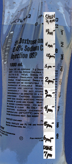 To time tape an IV you may make your own time tape with adhesive tape or use pre-made labels: